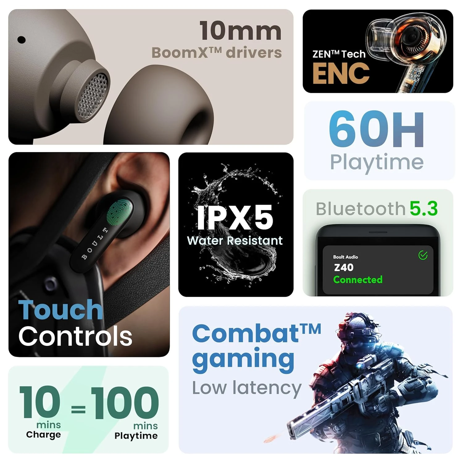 🎤 Zen™ ENC Mic: Environmental Noise Cancellation ensures clear calls even in noisy environments.