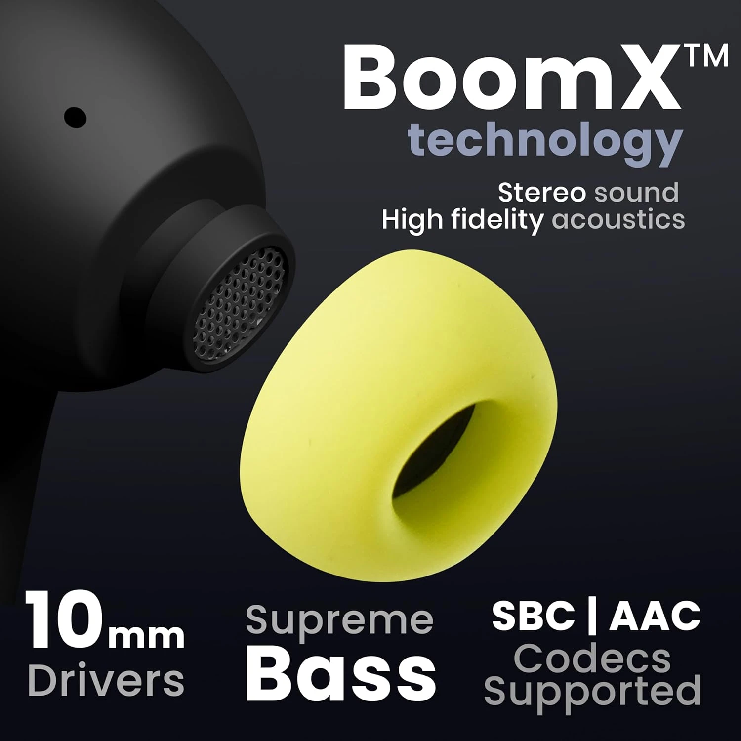 🔊 10mm Rich Bass Drivers: BoomX™ tech delivers deep bass and crisp highs for immersive sound.