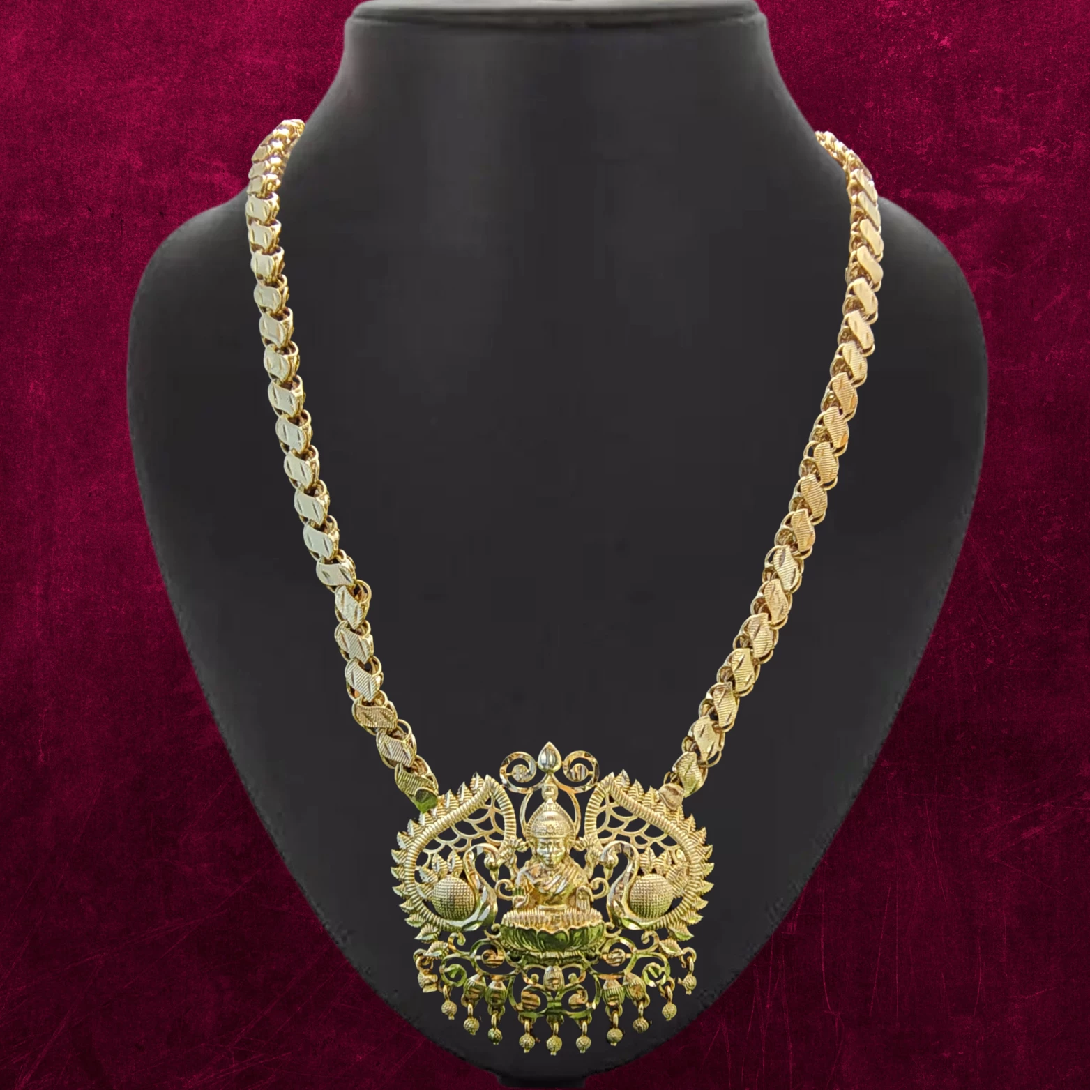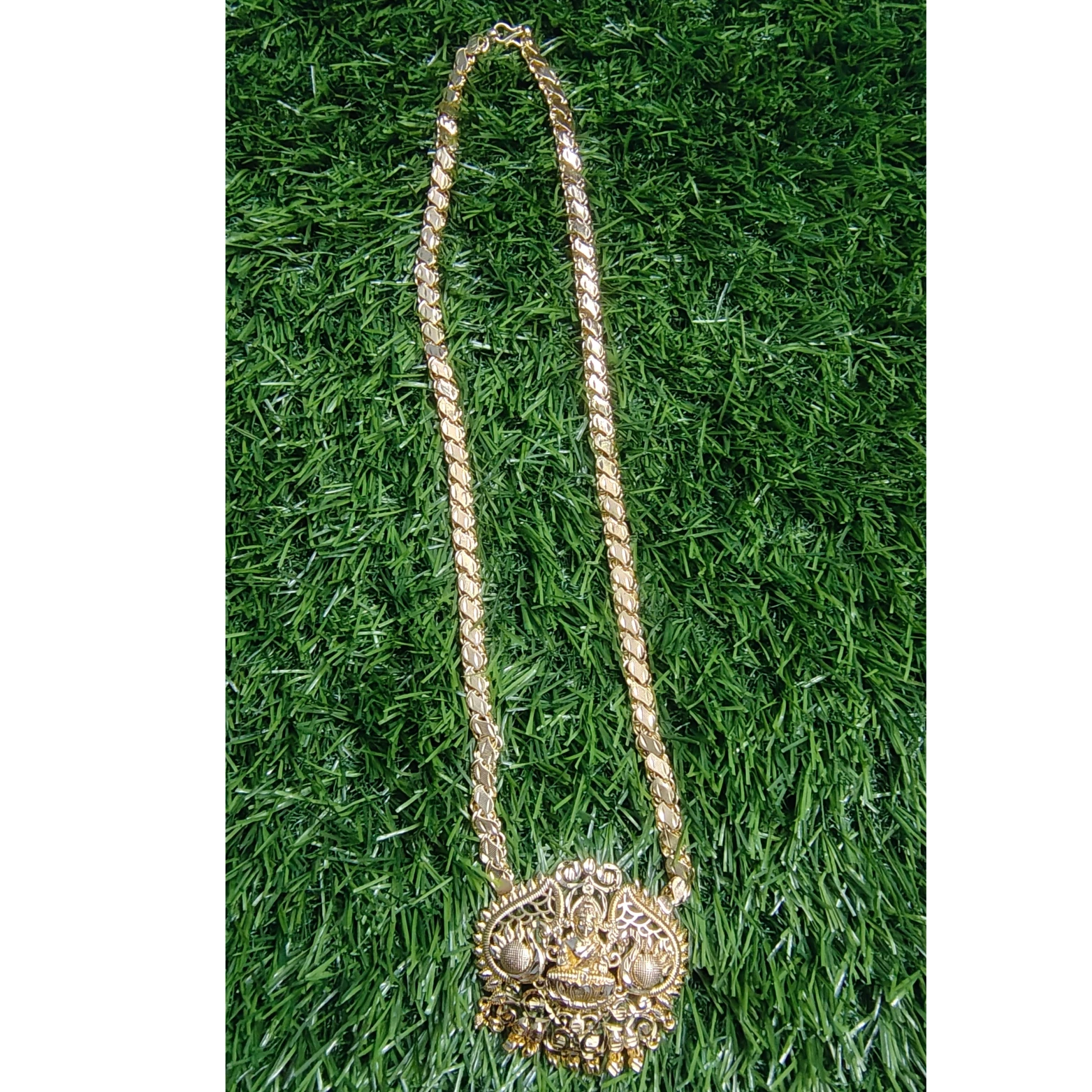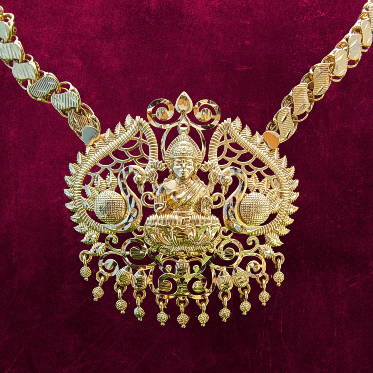 Lakshmi Pendant Design – Features a detailed motif of Goddess Lakshmi, symbolizing wealth and prosperity.