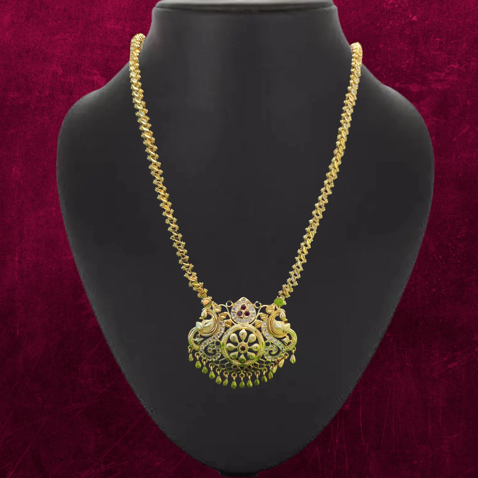 Add a royal charm to your jewellery collection with this Peacock Design Dollar Chain – a stunning piece of gold replica imitation jewellery that captures the grandeur of traditional craftsmanship. 🌟